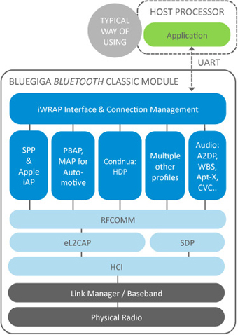 Bluetooth protocol stack and profiles from the end user. iWRAP can be used for almost anything from simple data or audio applications to more complex use cases where interaction with several